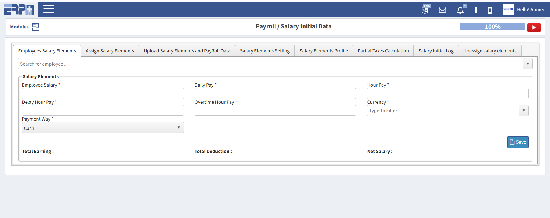 رفع بيانات الرواتب للموظفين دفعة واحدة بكافة تفاصيل عناصر المرتب.