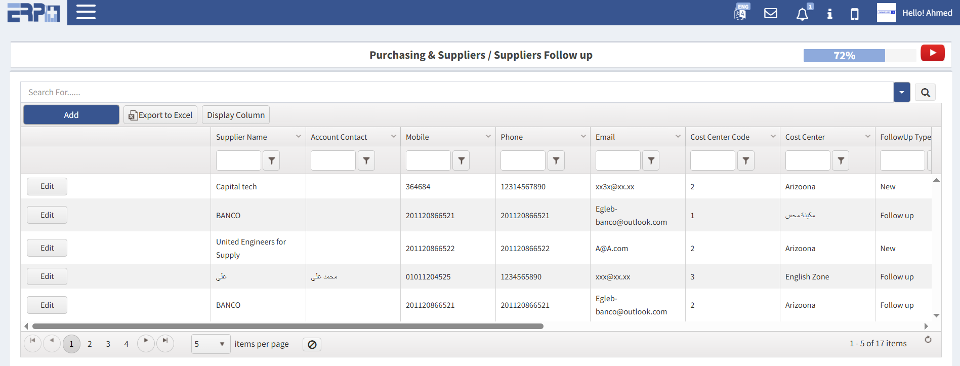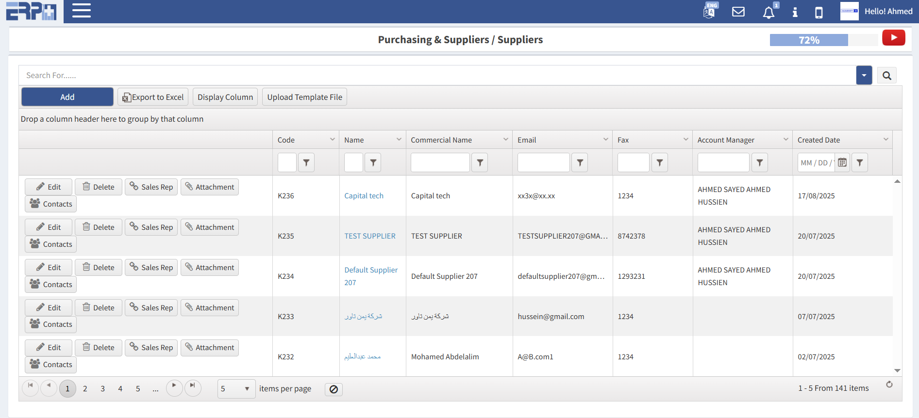 تحديد الموردين واحدًا تلو الآخر أو التحميل المجمع لبيانات الموردين.