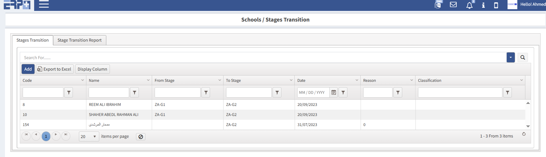 إمكانية تحويل وعرض التحويلات بين السنوات الدراسية للطلاب من خلال الجزء الخاص بالتحويلات بين السنوات الدراسية.