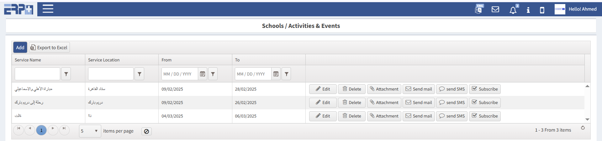 عرض وتنظيم الأنشطة المتنوعة للطلاب وإمكانية الموافقة عليها أو رفضها وكذلك عرض الطلاب غير المشاركين في أنشطة المدرسة المختلفة.