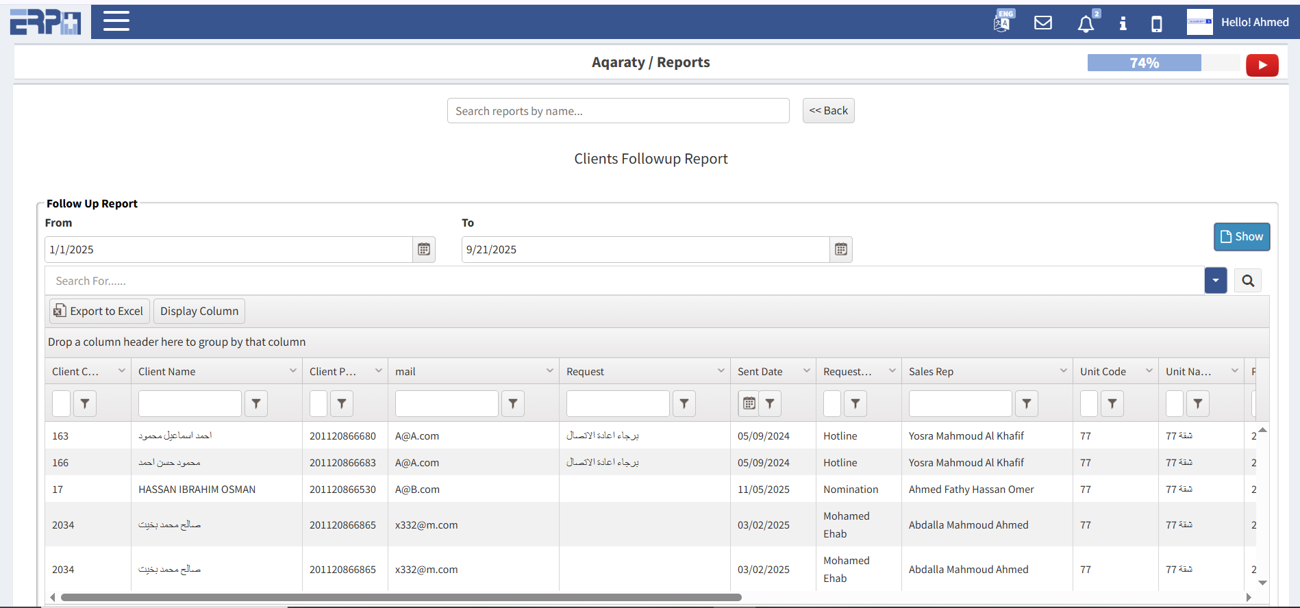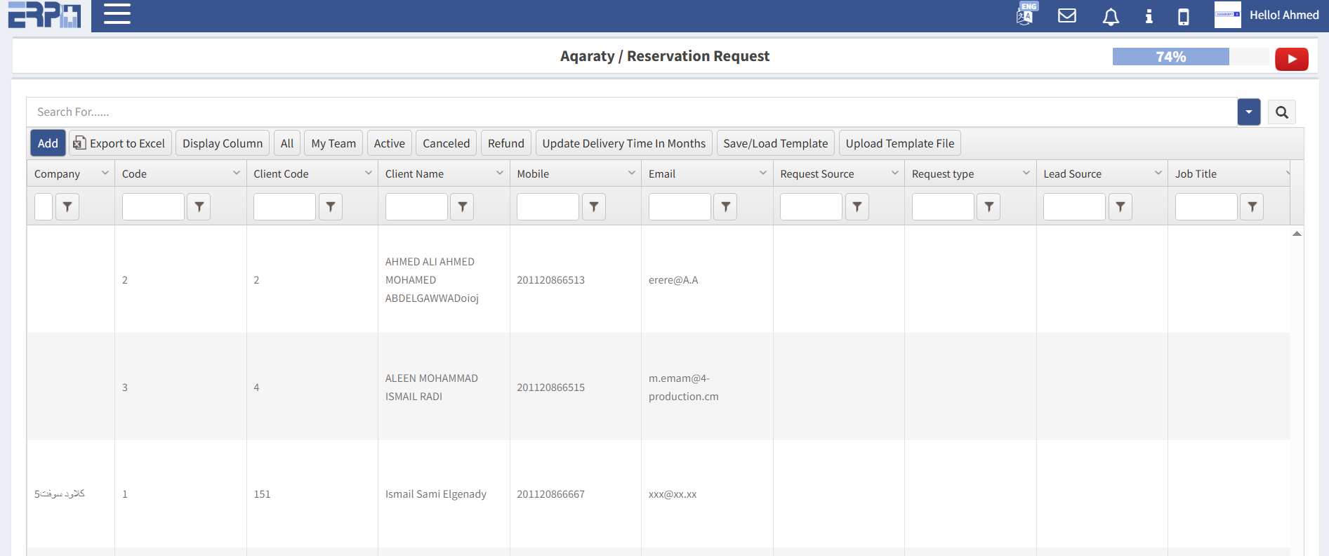 Customer registration from websites, portals, social media or any external links and add the data directly to the ERP Aqaraty system.