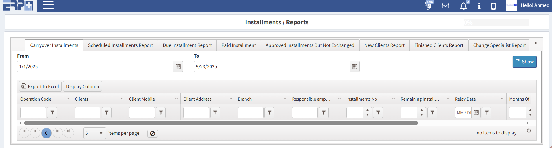 Carryover installments, scheduled installments, due installments, paid installments and many other related reports Reports.