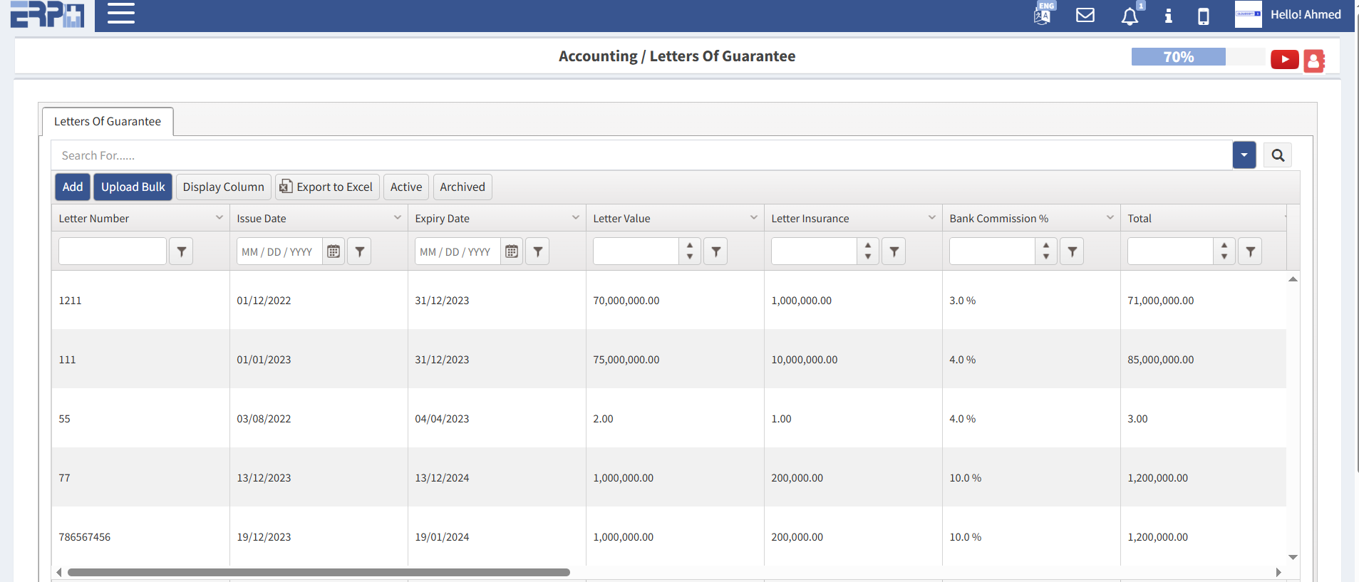 إنشاء خطابات الضمان "LCs" ومتابعة سير العمل بها.