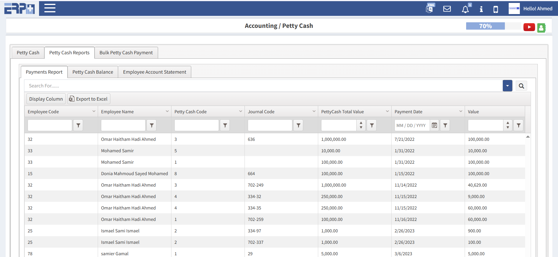 إنشاء سجلات المصروفات النثرية لكل موظف وإجراء التعديلات عليها.