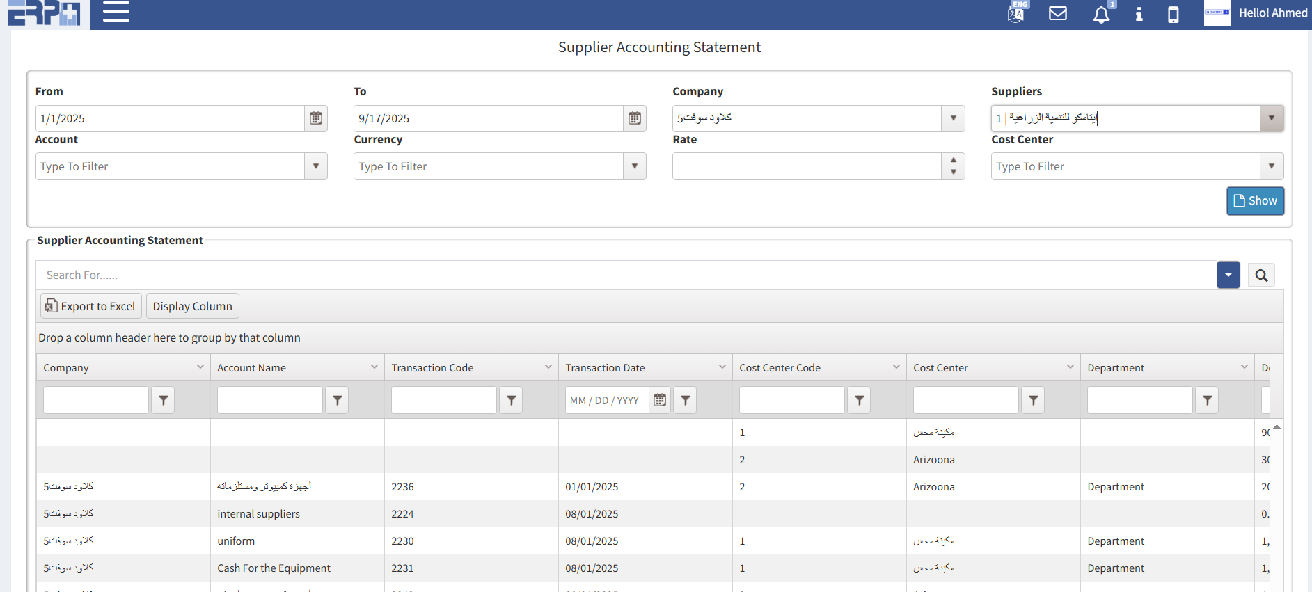 بيان محاسبة الموردين