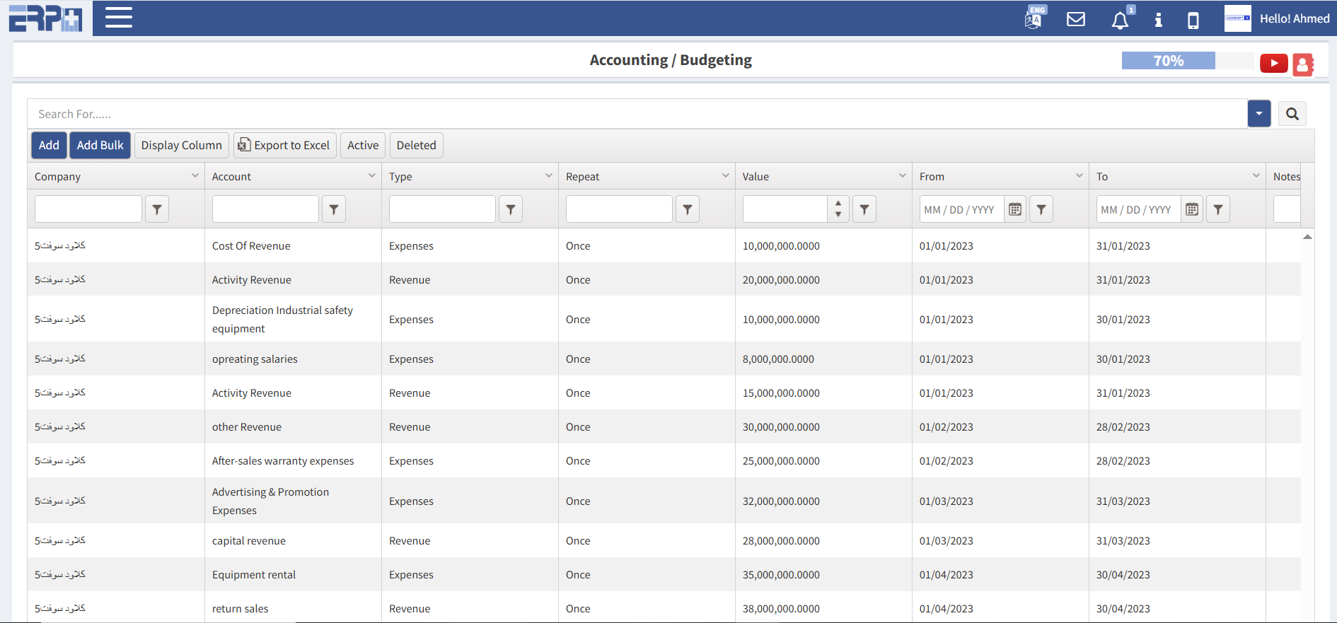 مخطط حسابات بمستويات غير محدودة من الإنشاء والتحميل المجمع.