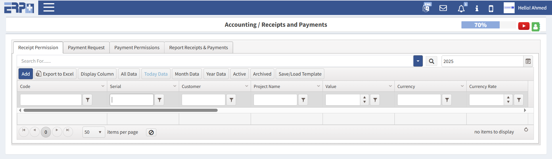 فواتير الحسابات المدينة وتقديمها إلى GL وإضافة إيصالاتها.