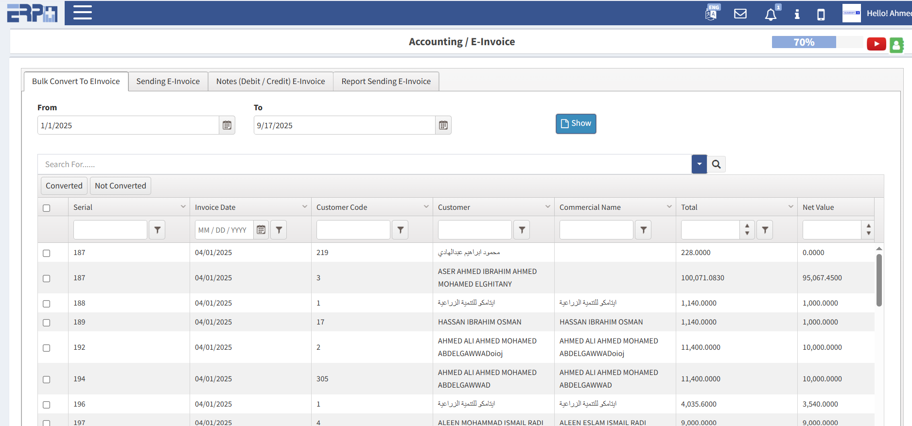 أرصدة افتتاحية متعددة للعملاء بتواريخ مختلفة مع خيار التحميل المجمع.
