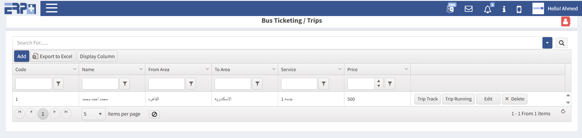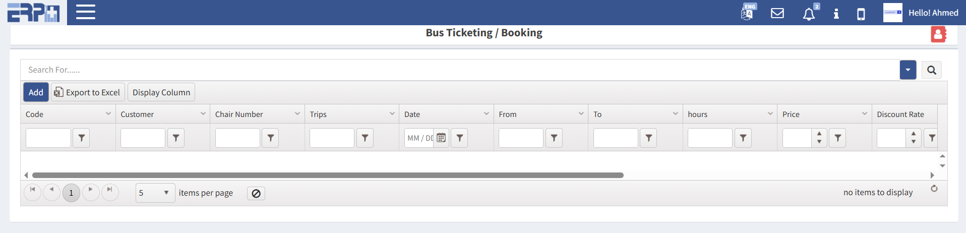 أحدث ثورة في أعمال النقل الخاصة بك باستخدام ERP+. إدارة أساطيل الحافلات وحجوزات المقاعد وإصدار التذاكر الرقمية في منصة واحدة. متكامل تمامًا مع الموارد البشرية والمالية لتتبع الإيرادات في الوقت الفعلي.