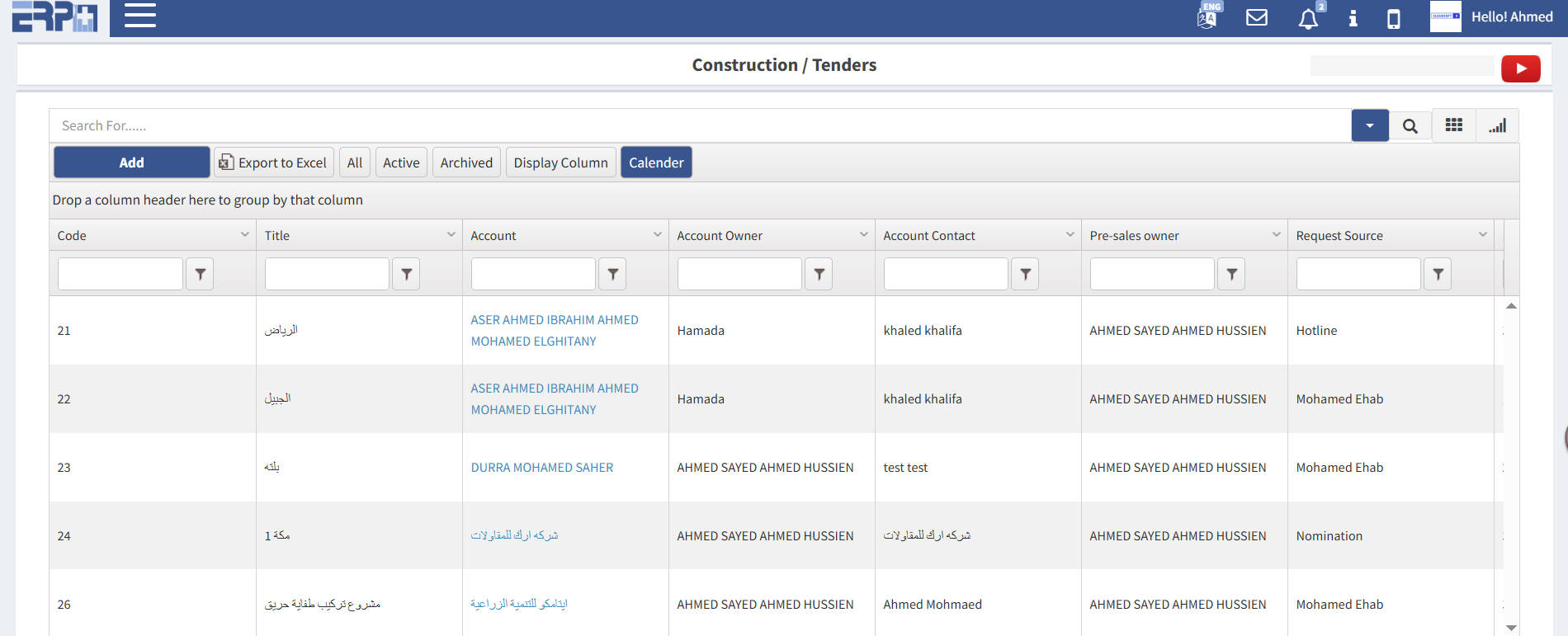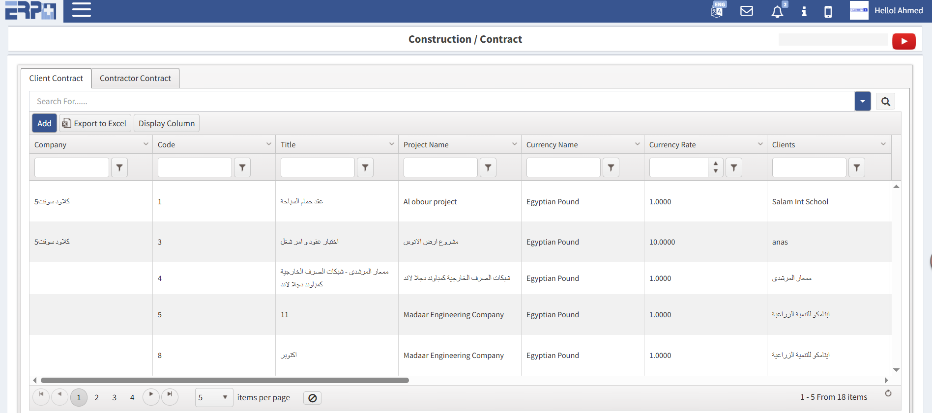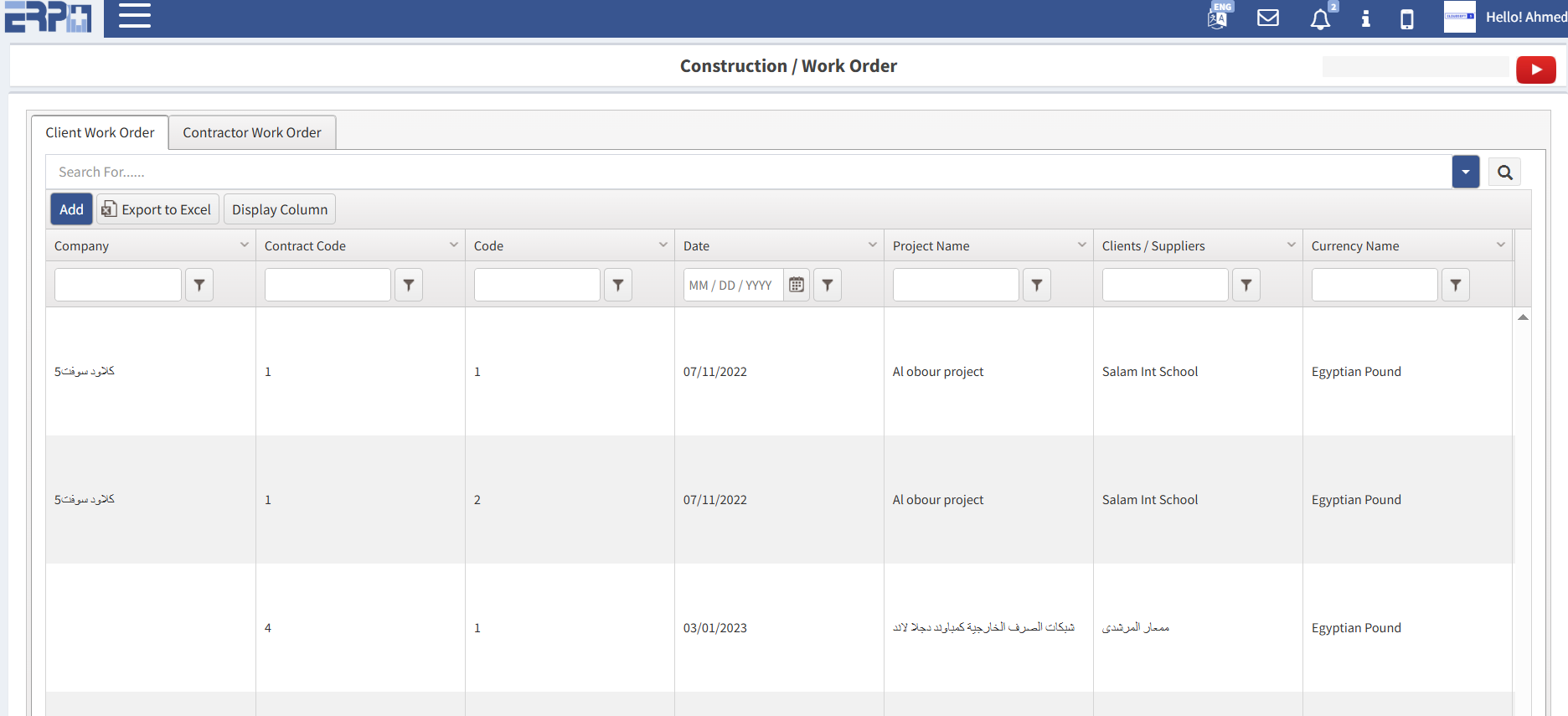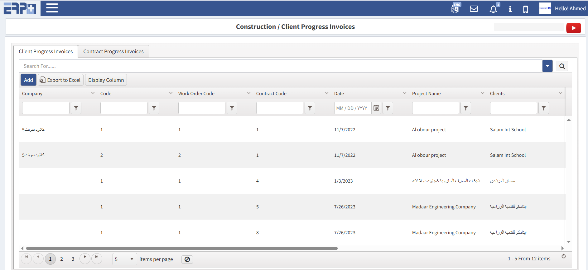 إدخال كافة عقود العملاء واستخراج تقرير الجرد بنسب الإنجاز السابقة واستخراج فاتورة العميل.