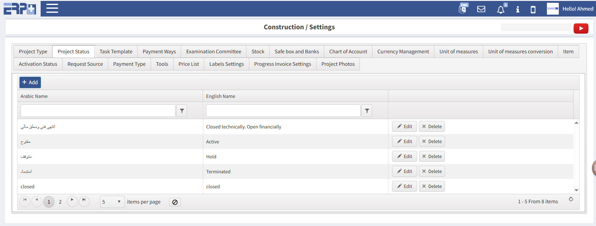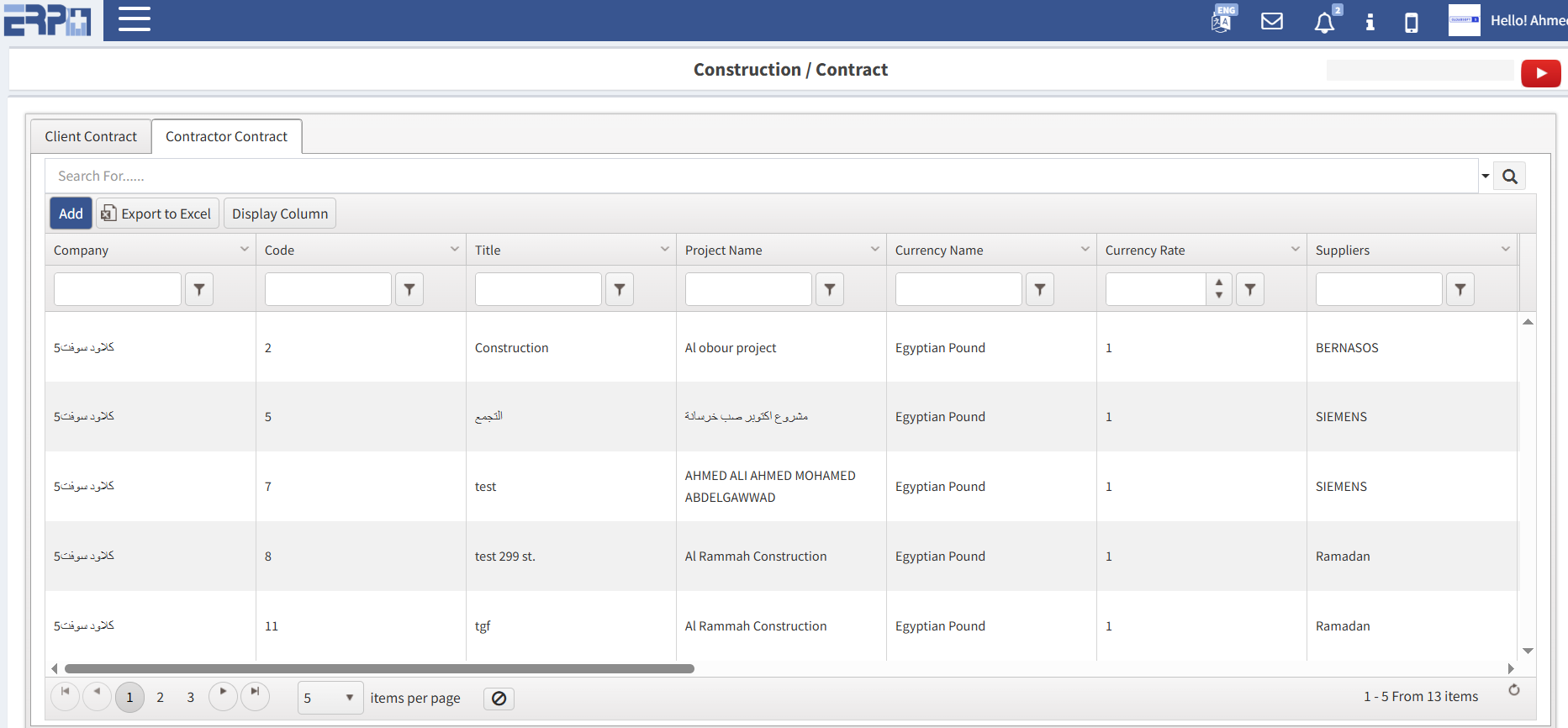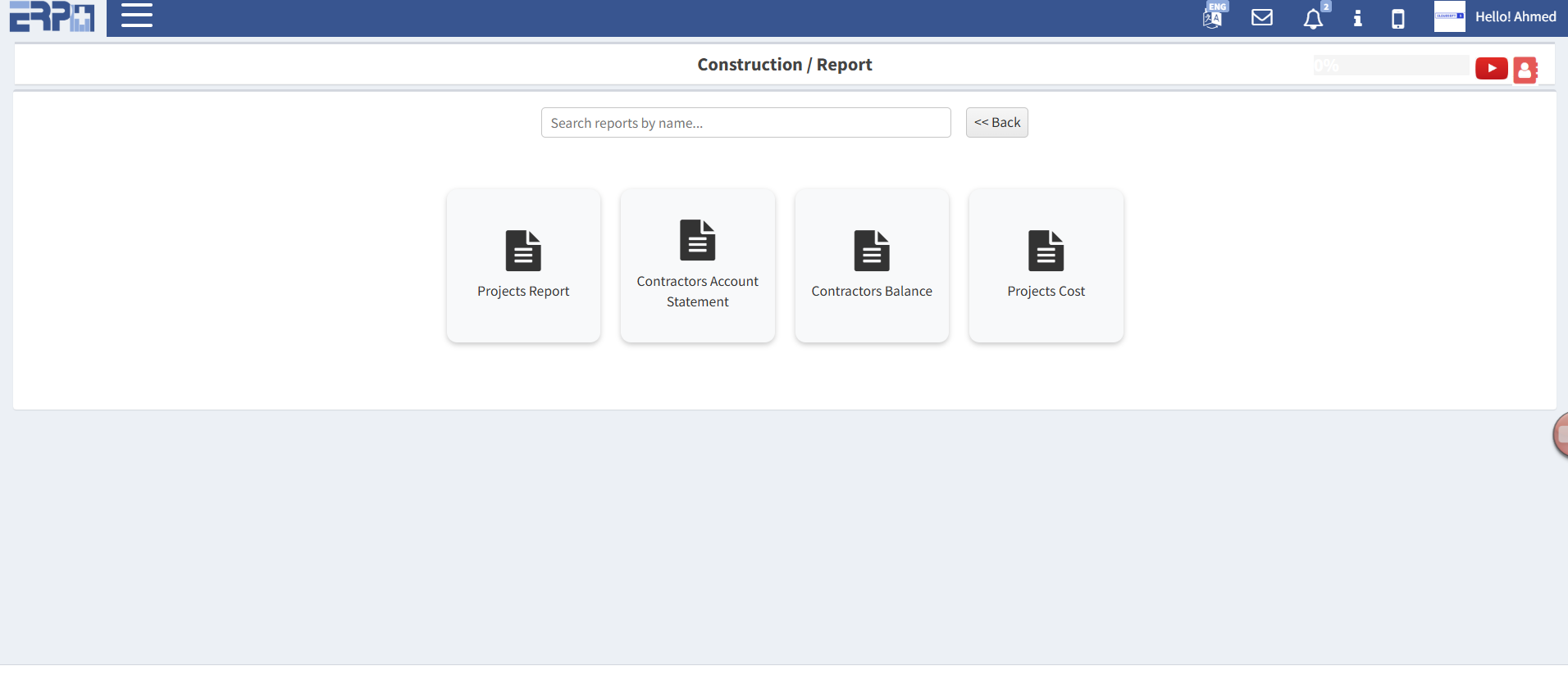 إدخال جميع عقود المقاولات واستخراج سجل معدلات الإنجاز السابقة واستخراج فاتورة المقاول.