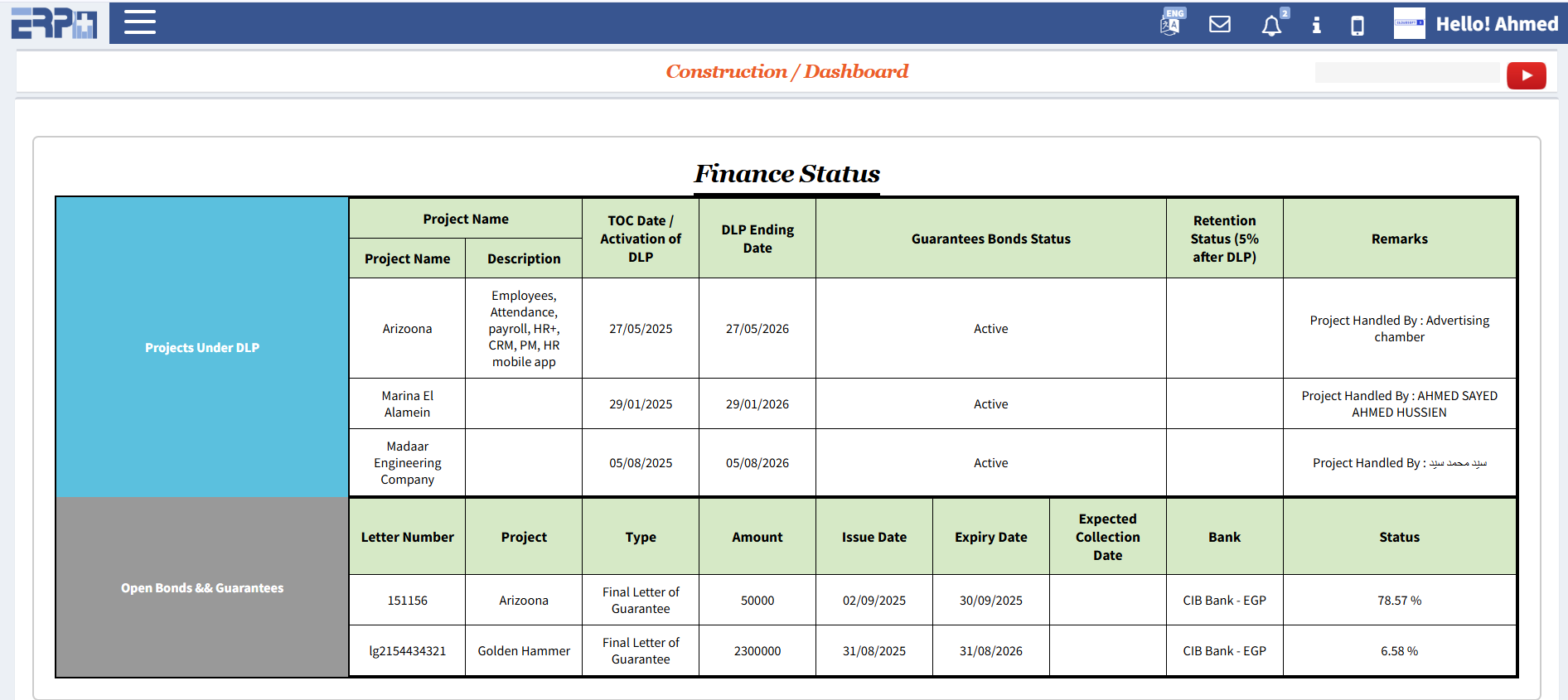 إنشاء موازنة تحليلية كاملة للمشروع مع إدخال (نسبة الضريبة – نسبة التكاليف غير المباشرة – قيمة المواد الأولية – قيمة العمالة – قيمة المقاولين – قيمة الآلات) وتحديد نسبة الربح لكل بند واستخراج نسبة احتمال الربح من المشروع.