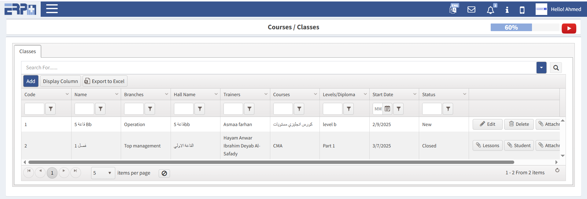 الدورات (إضافة/تعديل/حذف).