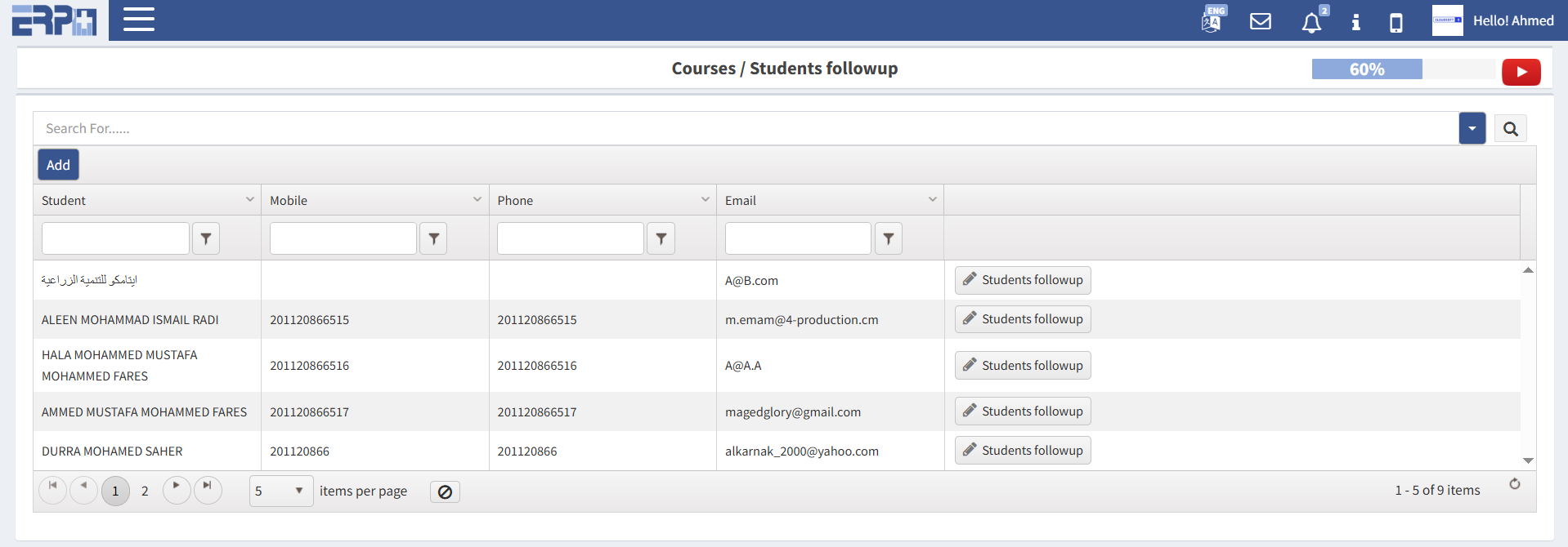 متابعة الطلاب (إضافة/تعديل/حذف).
