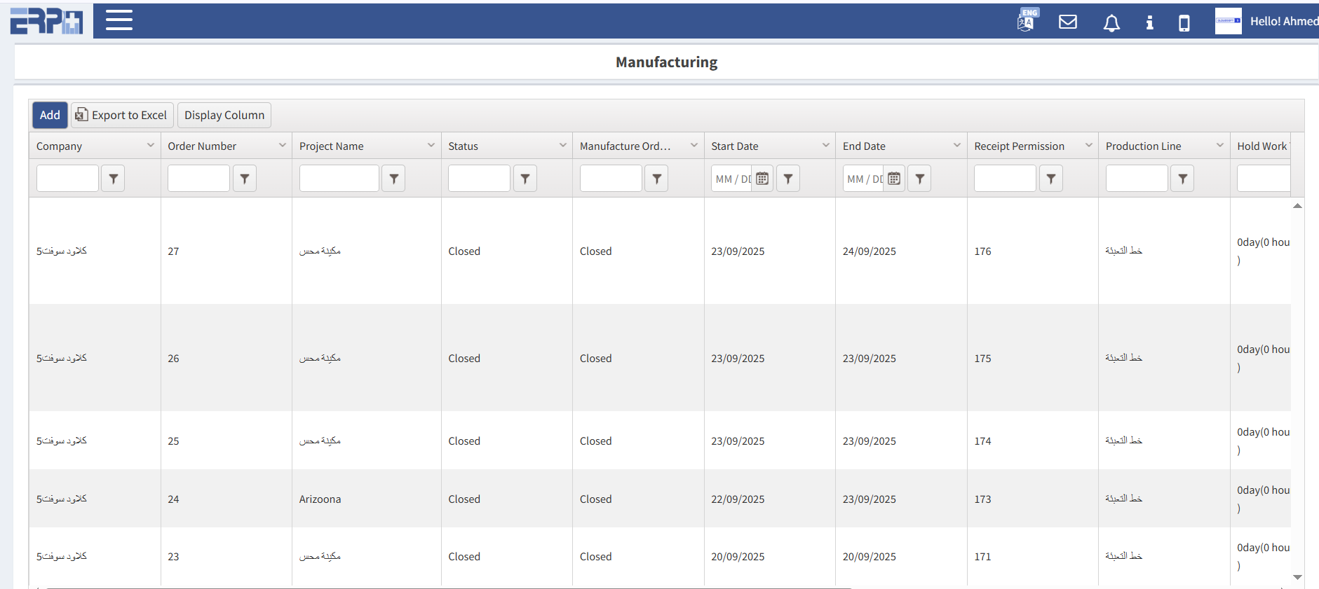 مراقبة خطوط الإنتاج يوميًا ومتابعة حالات أمر العمل المتغيرة في الوقت المناسب.