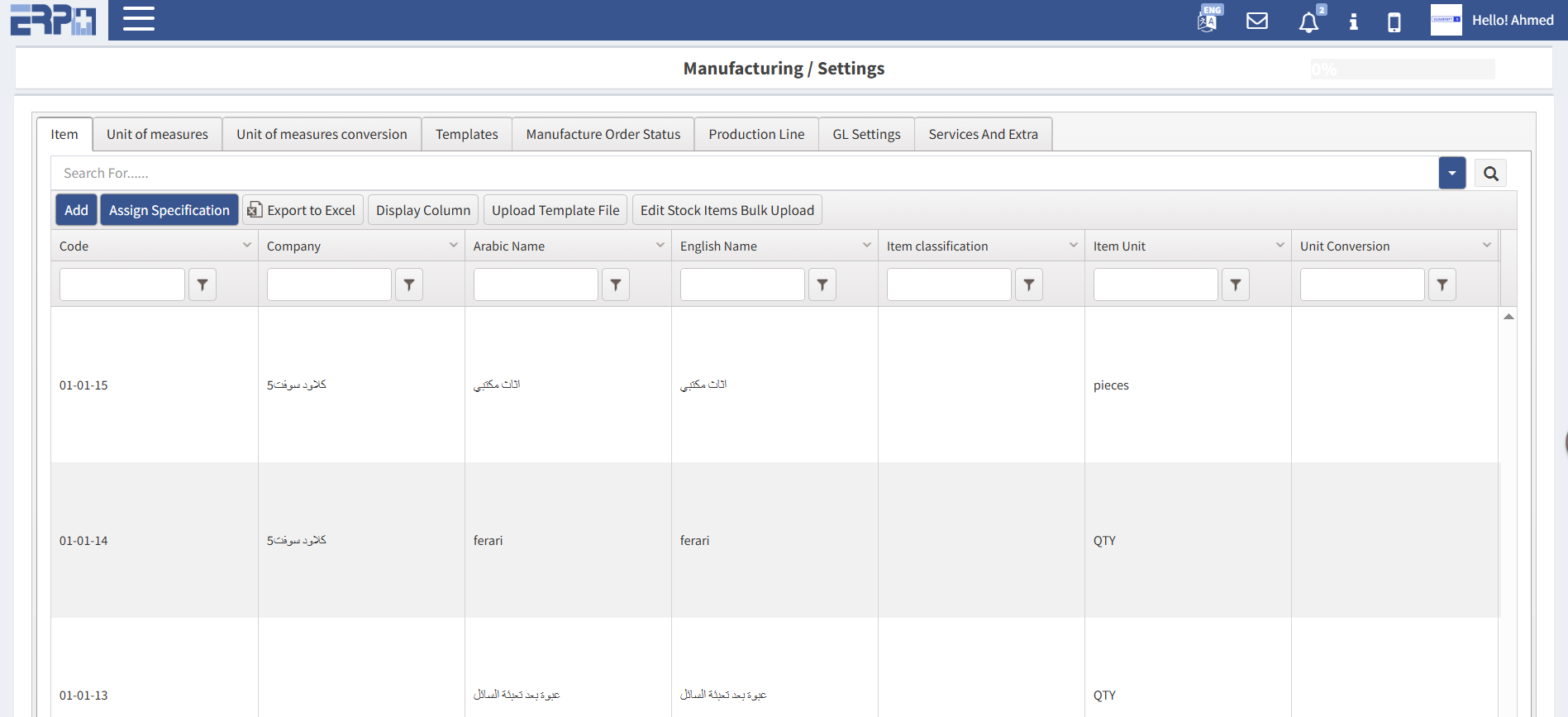 التعريف بجميع المنتجات وربطها بمكونات الإنتاج حسب المعايير والمقاييس.