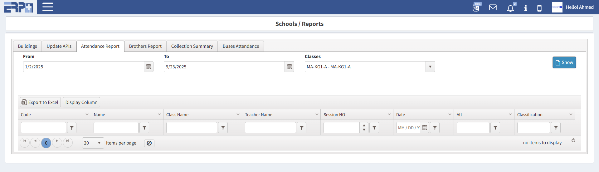 إعداد الجدول الخاص بالعام الدراسي والفصل الدراسي.