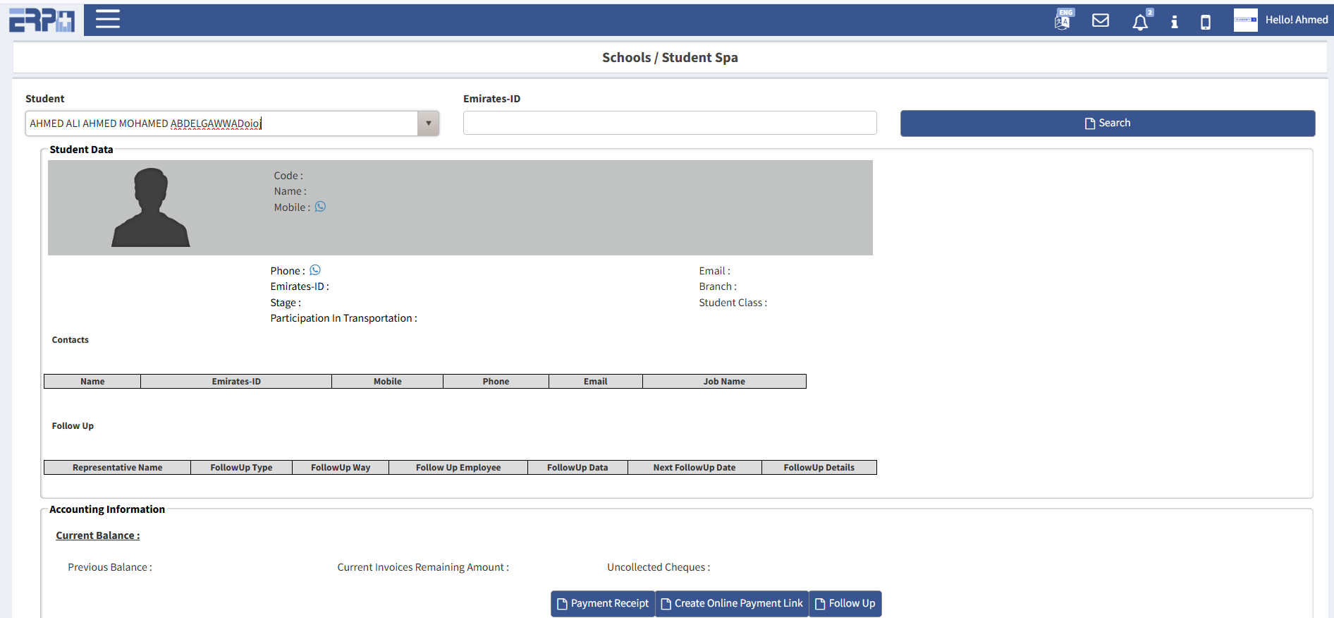 إمكانية الاطلاع على الفواتير الخاصة بالطلبة “حساب كل طالب على حدة” وإمكانية الدفع الإلكتروني للفاتورة كمرحلة تالية بعد الربط ببوابات الدفع.