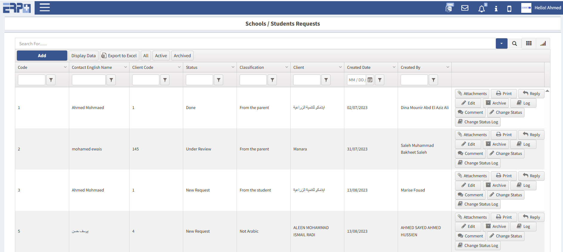 إمكانية تقديم طلبات للطلاب لخدمات موجودة بالفعل داخل النظام المدرسي داخليًا، مثل: المشاركة في نشاط أو رحلات مدرسية.