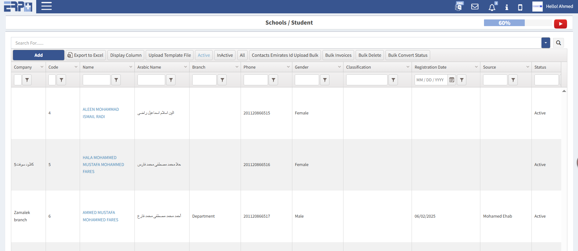 نماذج تقديم الطلاب حتى دخولهم المدرسة ورفعها على النظام كاملة، وكذلك بيانات الطالب عند التسجيل، وتظهر هذه البيانات كاملة في ملفات الطلاب.