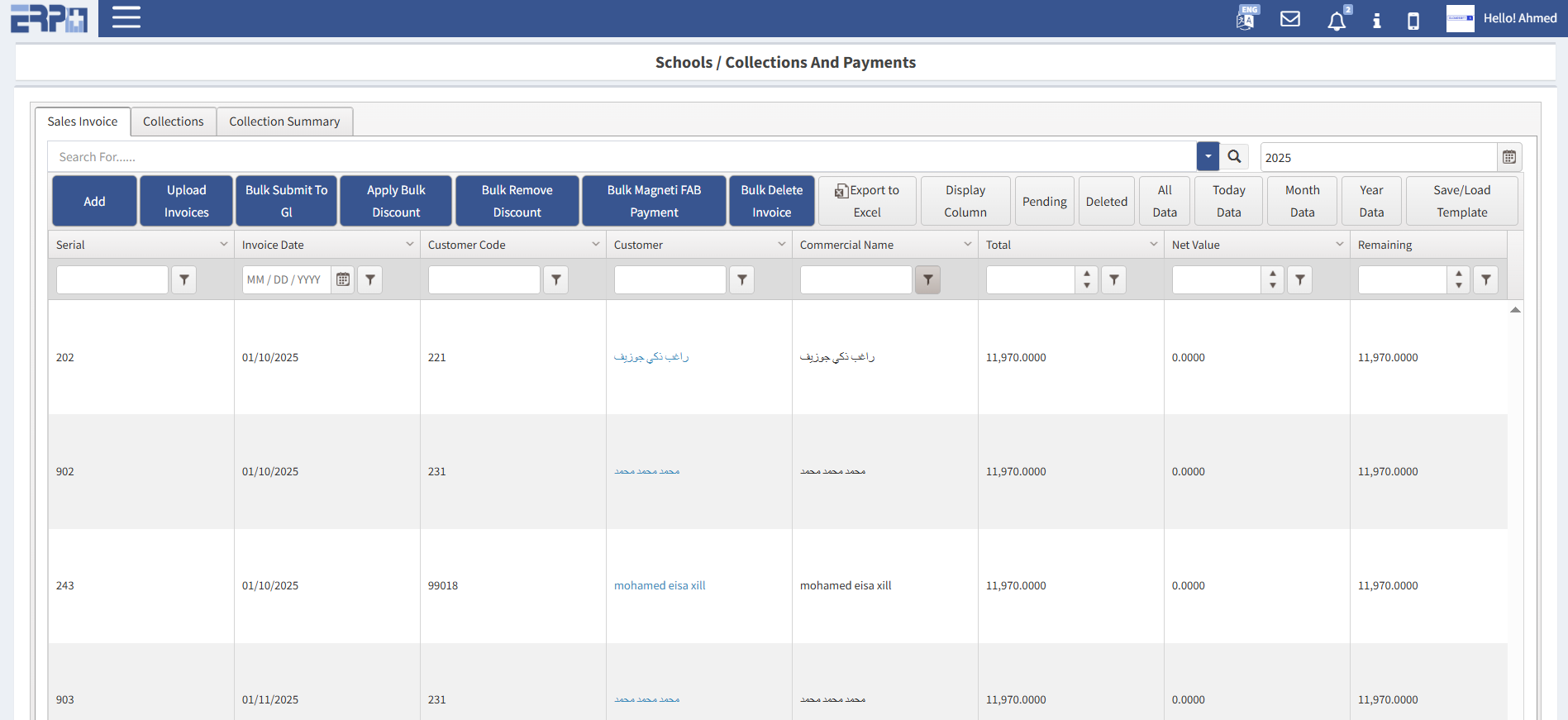 إصدار الفواتير وفواتير بيرفورما للطلاب لمتابعة التحصيلات.