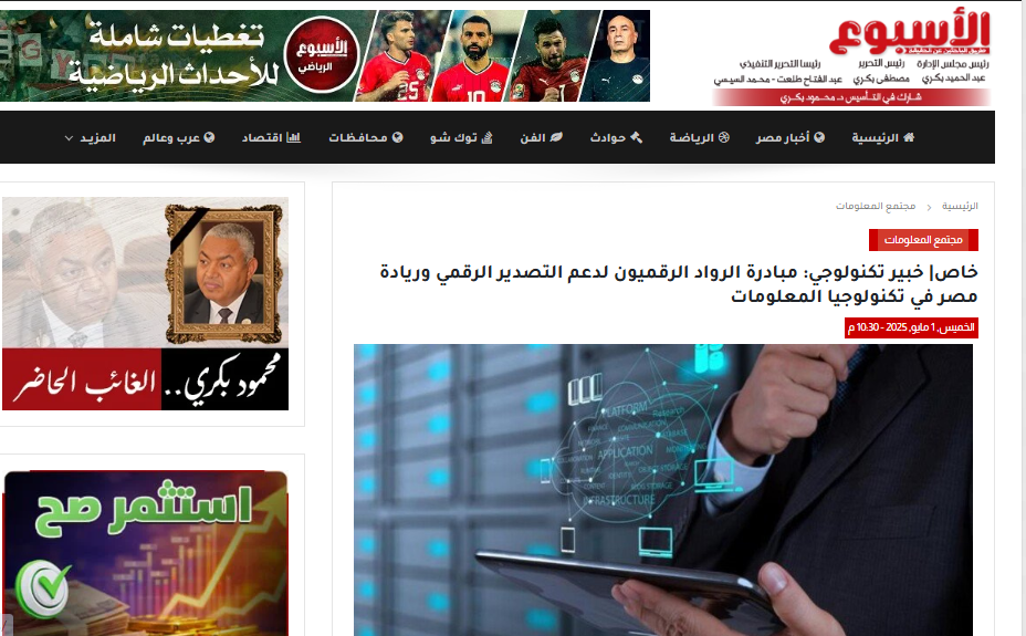 يناقش المقال المنشور في موقع "الأسبوع" أهمية مبادرة "الرواد الرقميون" التي أطلقتها الدولة المصرية بهدف تأهيل الكوادر الشابة وتعزيز مكانة مصر في مجال التصدير الرقمي وتكنولوجيا المعلومات. وفي هذا السياق، أشاد المهندس خالد خليفة، الخبير التكنولوجي، بهذه المبادرة الرئاسية الذكية، مؤكداً أنها خطوة استراتيجية لزيادة الحصيلة الدولارية ودعم الاقتصاد الوطني عبر تصدير الخدمات الرقمية، أسوة بالتجربة الهندية. وشدد "خليفة" على ضرورة التركيز على التدريب العملي في مجالات الذكاء الاصطناعي وتطوير المحتوى العربي، مشيراً إلى أن هذه الكوادر ستتمكن من العمل كمستقلين أو في شركات تصدير البرمجيات، مما يساهم في إدخال العملة الصعبة وتعزيز ريادة مصر التكنولوجية في الشرق الأوسط.
